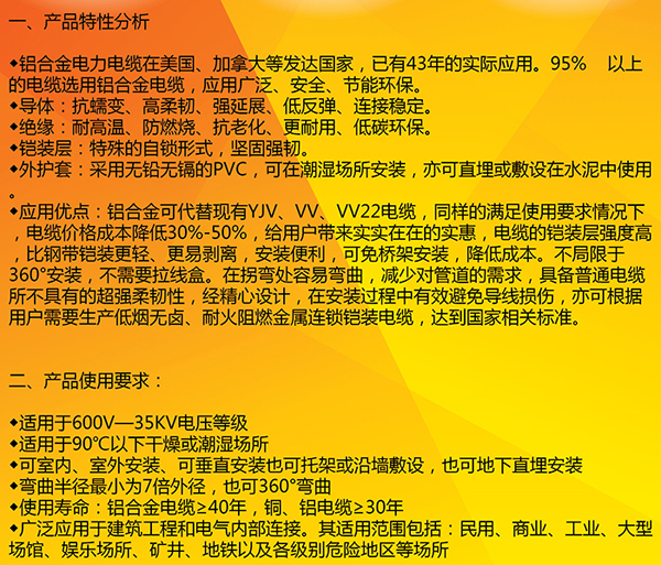 鋁合金電纜:鋁合金電纜ZR-YJLHV 瀏覽:3657